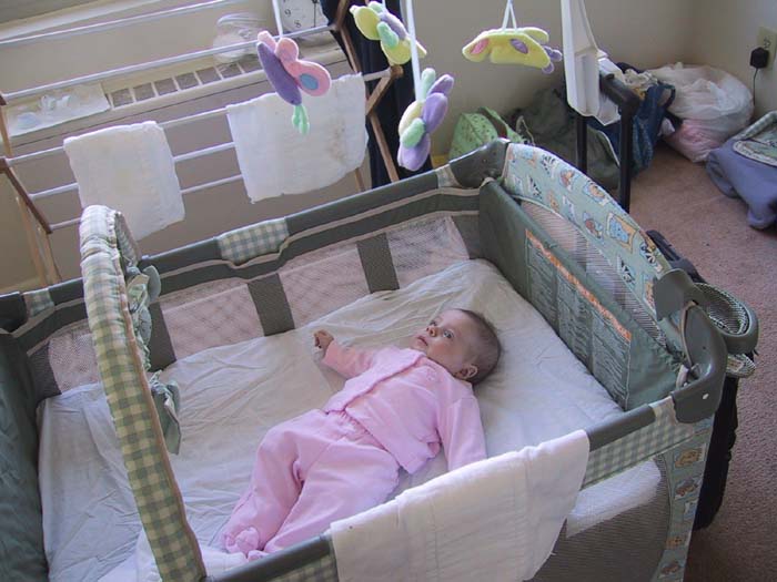 Using the play quilt. (Don't worry, that is only an
